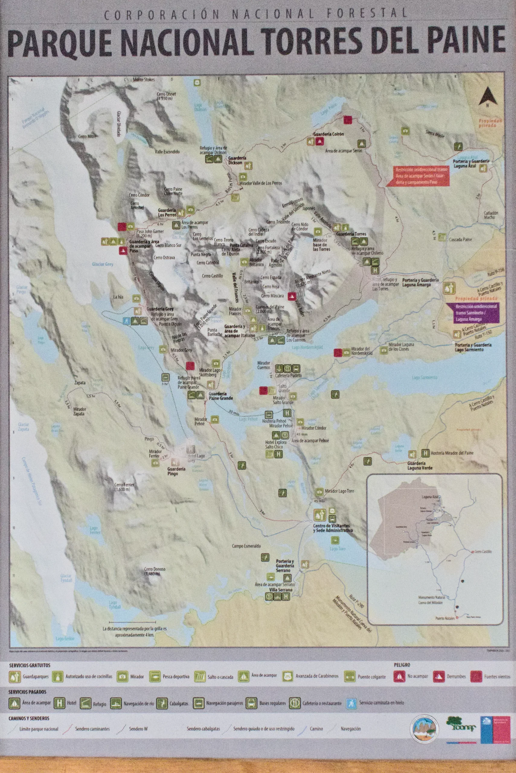 Über den Eingang Serrano könnt ihr einige Wanderungen und Aussichtspunkte erreichen. Wir haben uns für den Mirador Cóndor, den Wasserfall Salto Grande und den Mirador Lago Grey entschieden.